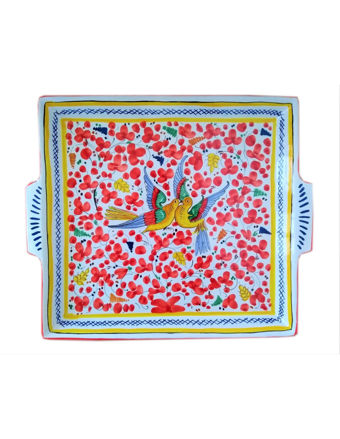 Ceramic square platter with red Arabesco pattern, handmade and handpainted in our factory in Deruta