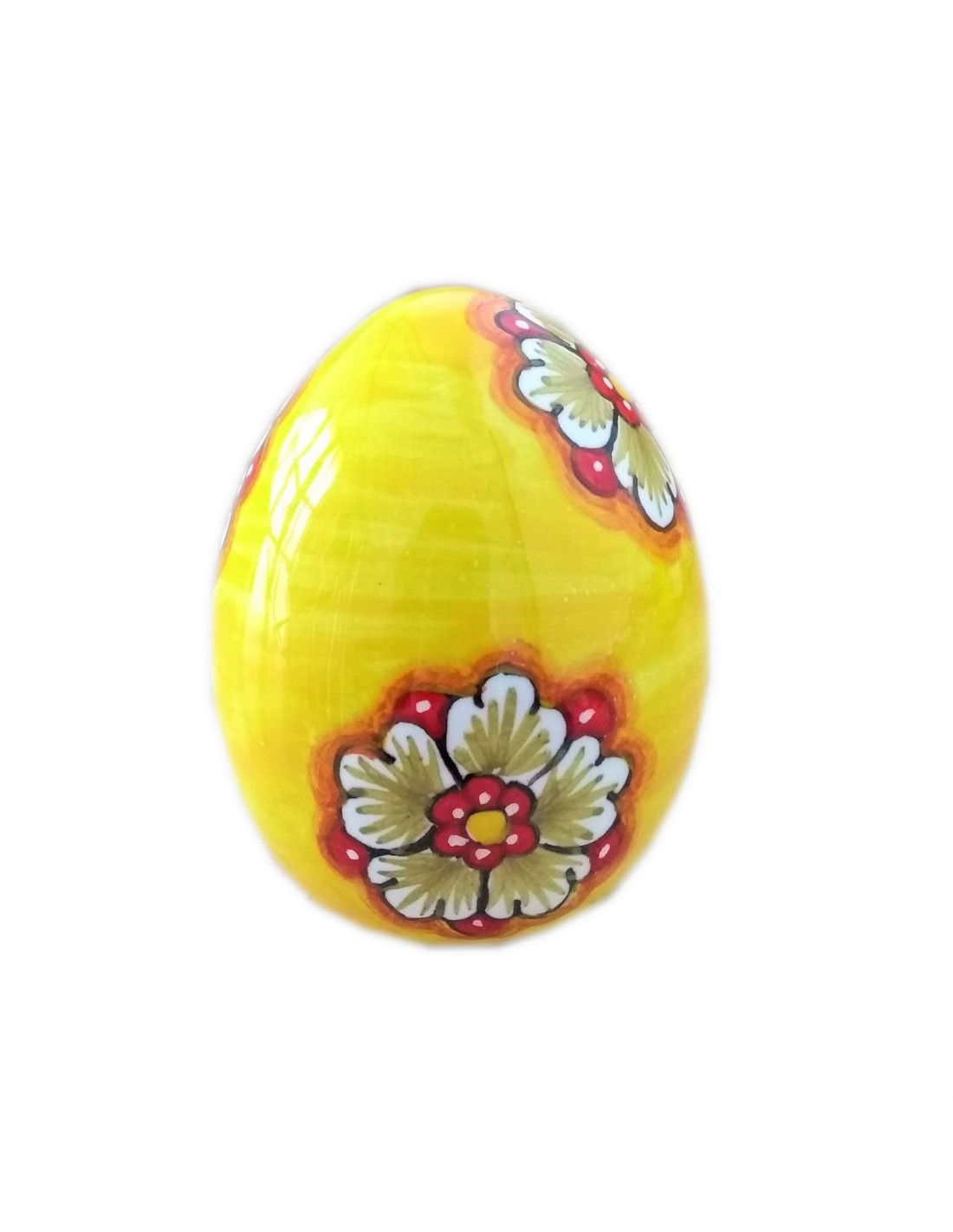 Ceramic easter egg with Yellow flower pattern, handmade and handpainted in our factory in Deruta