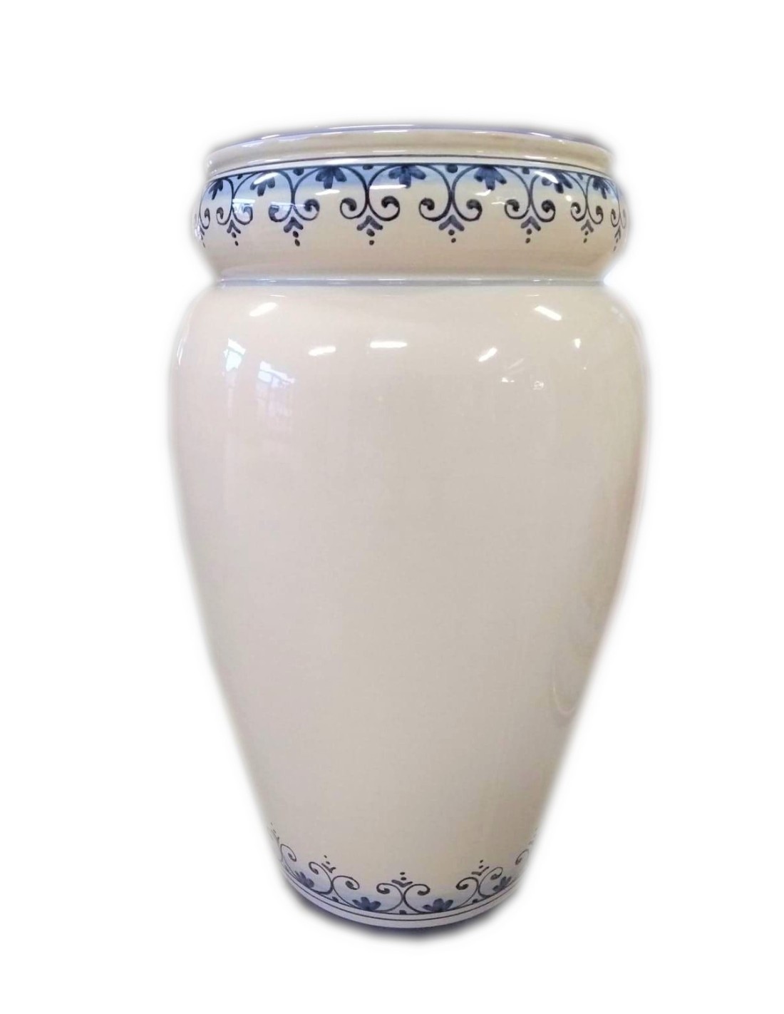 Ceramic umbrella stand with simple pattern, handmade and handpainted in our factory in Deruta