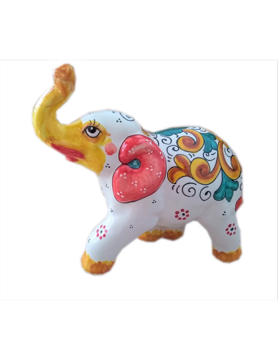 Ceramic ornamental elephant, handmade and handpainted in our factory in Deruta