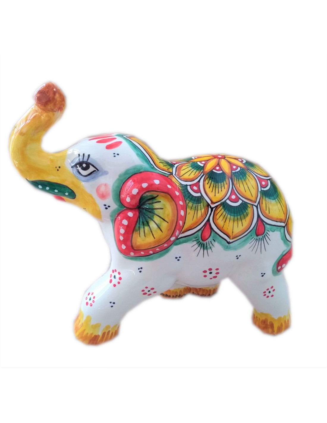 Ceramic ornamental elephant, handmade and handpainted in our factory in Deruta