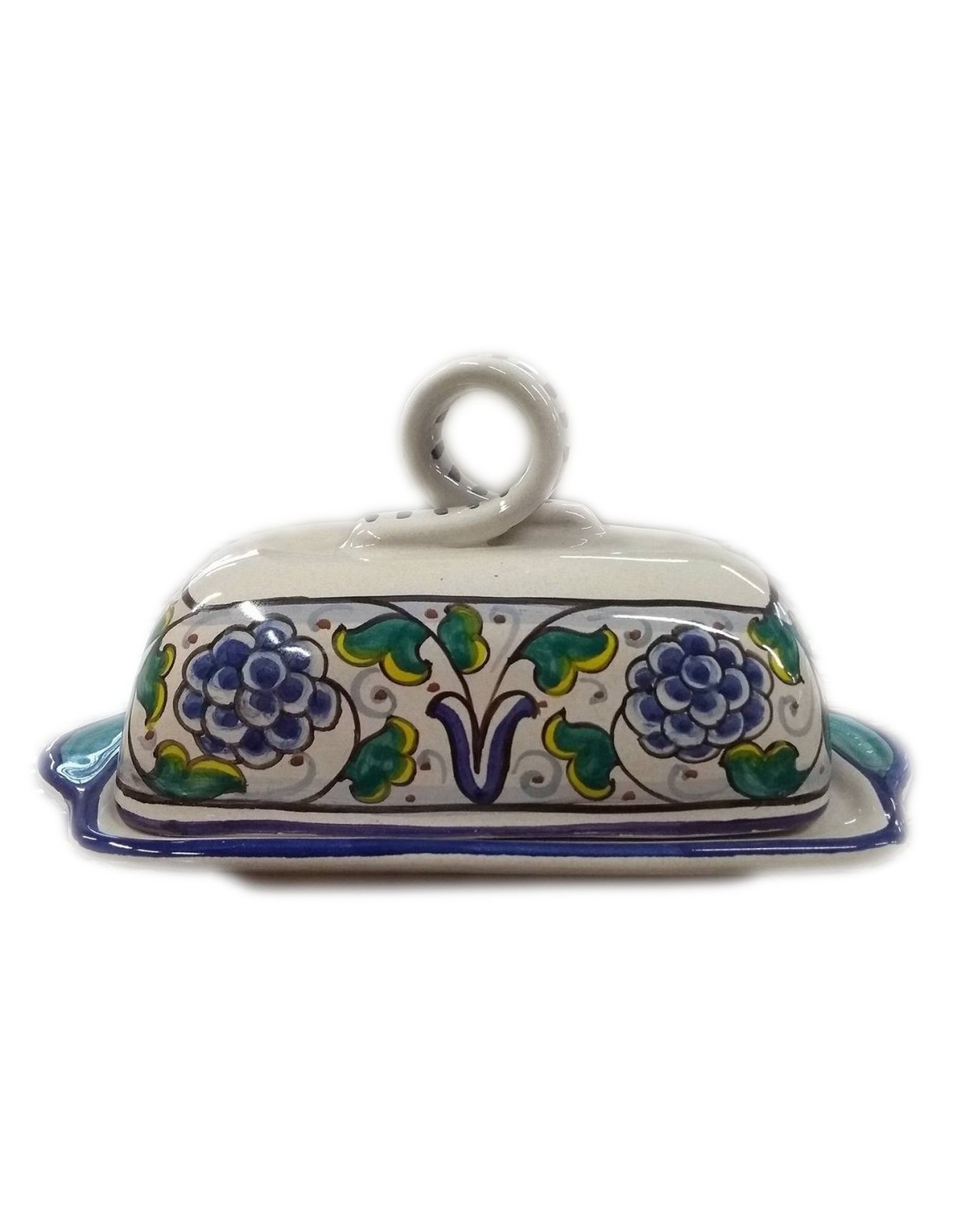 Ceramic butter dish with blackberry pattern, handmade and handpainted in our factory in Deruta