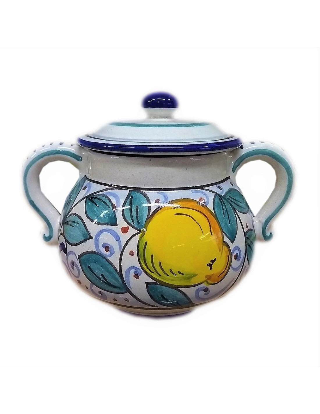 Ceramic sugar pot with lemons pattern, handmade and handpainted in our factory in Deruta