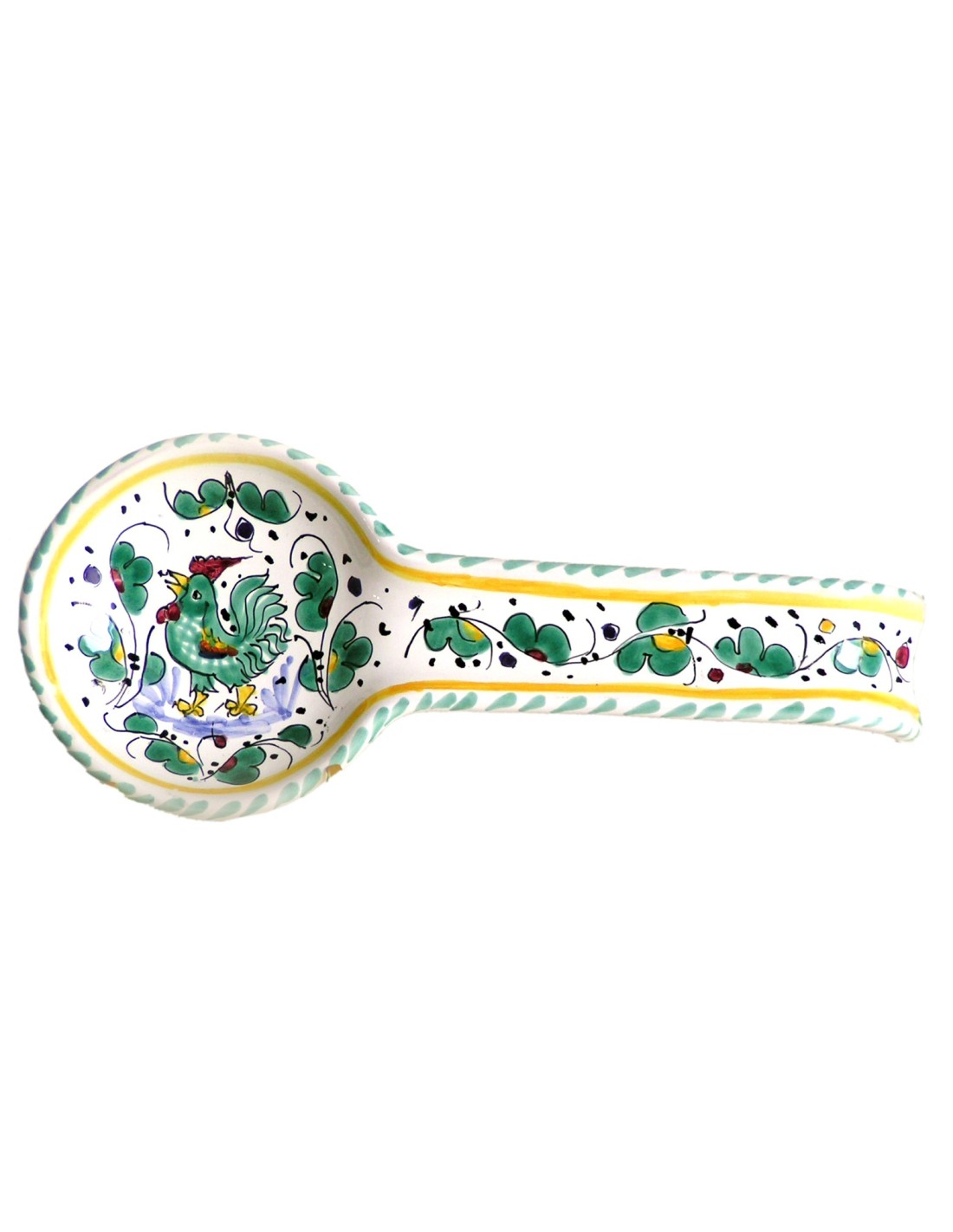 Ceramic spoon rest with Rooster pattern, handmade and handpainted in our factory in Deruta