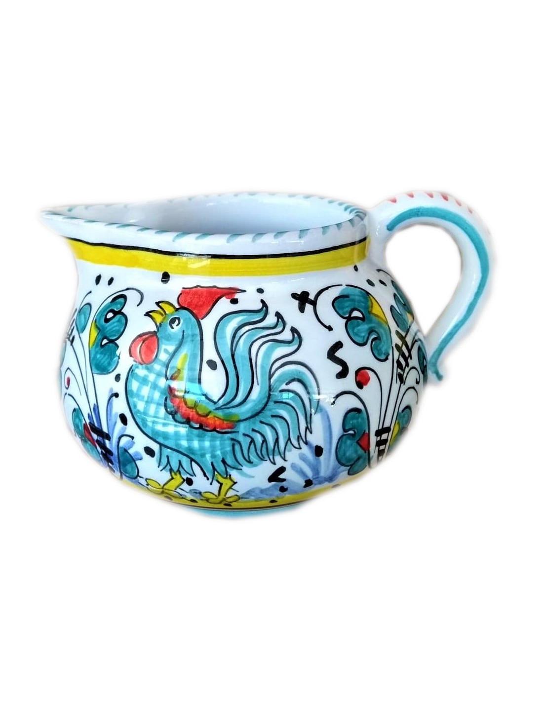 Ceramic creamer with green Rooster pattern, handmade and handpainted in our factory in Deruta