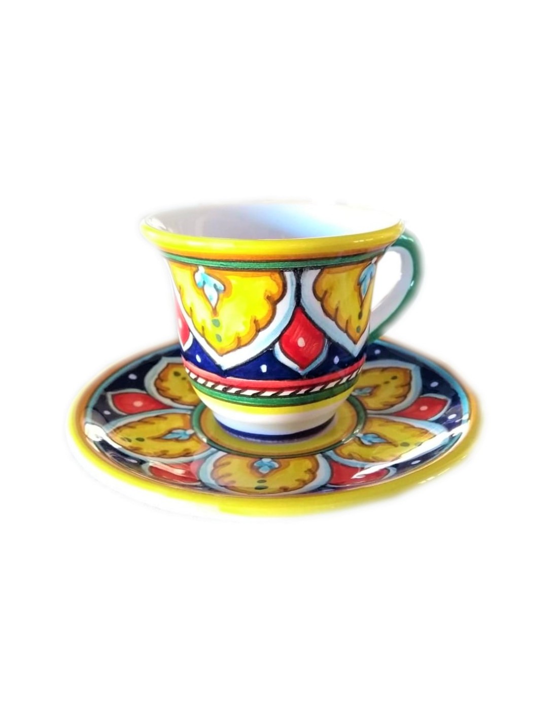 Ceramic espresso cup and saucer with Geometric pattern, handmade and handpainted in our factory in Deruta
