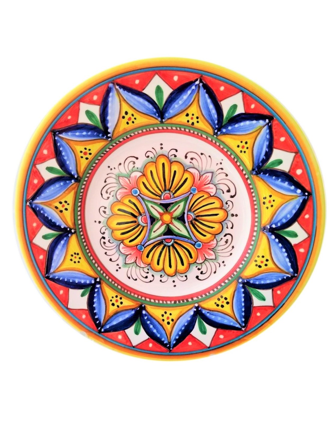 Ceramic decorative plate with geometrical pattern, handmade and handpainted in our factory in Deruta
