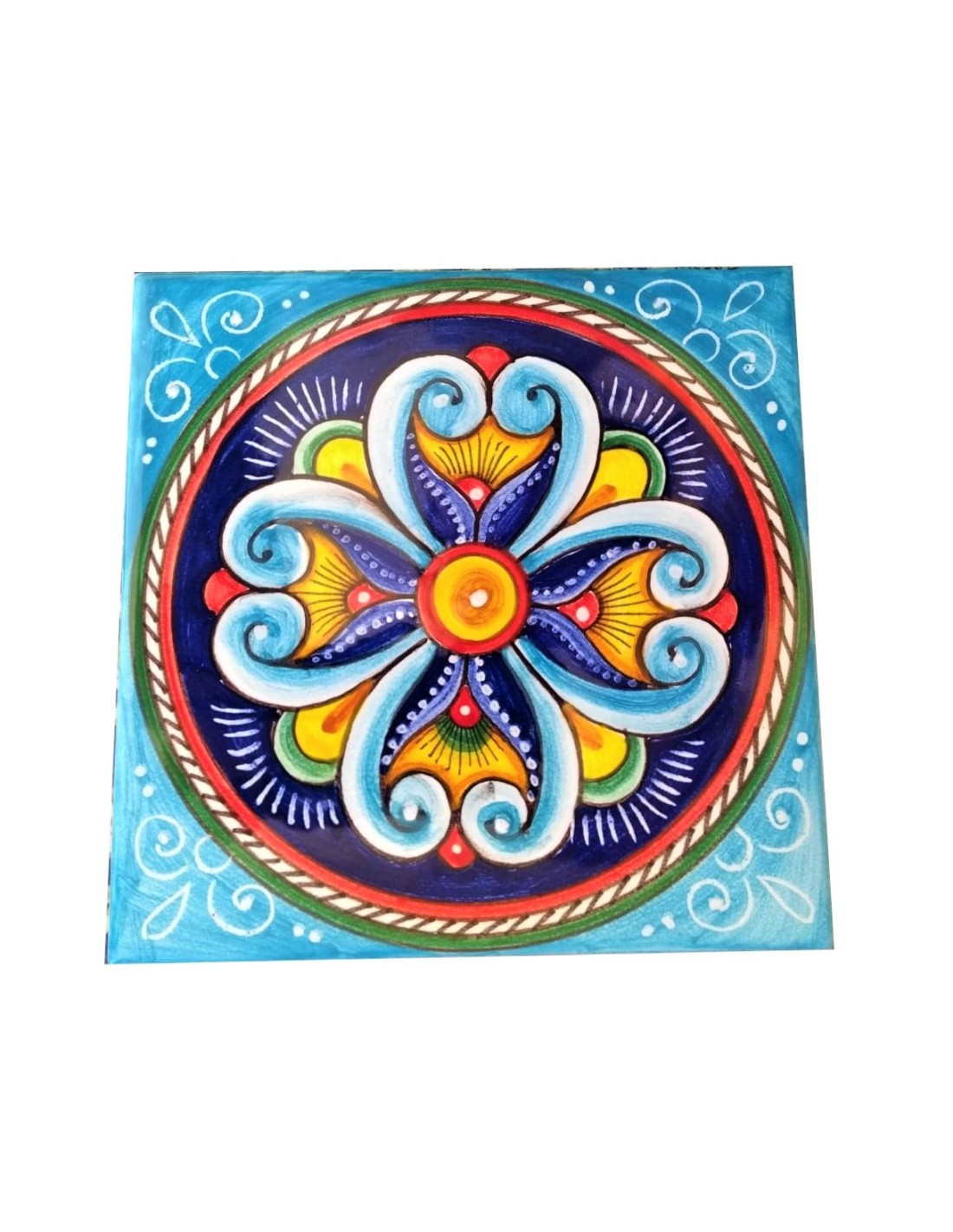Ceramic tile with geometrical pattern, handmade and handpainted in our factory in Deruta