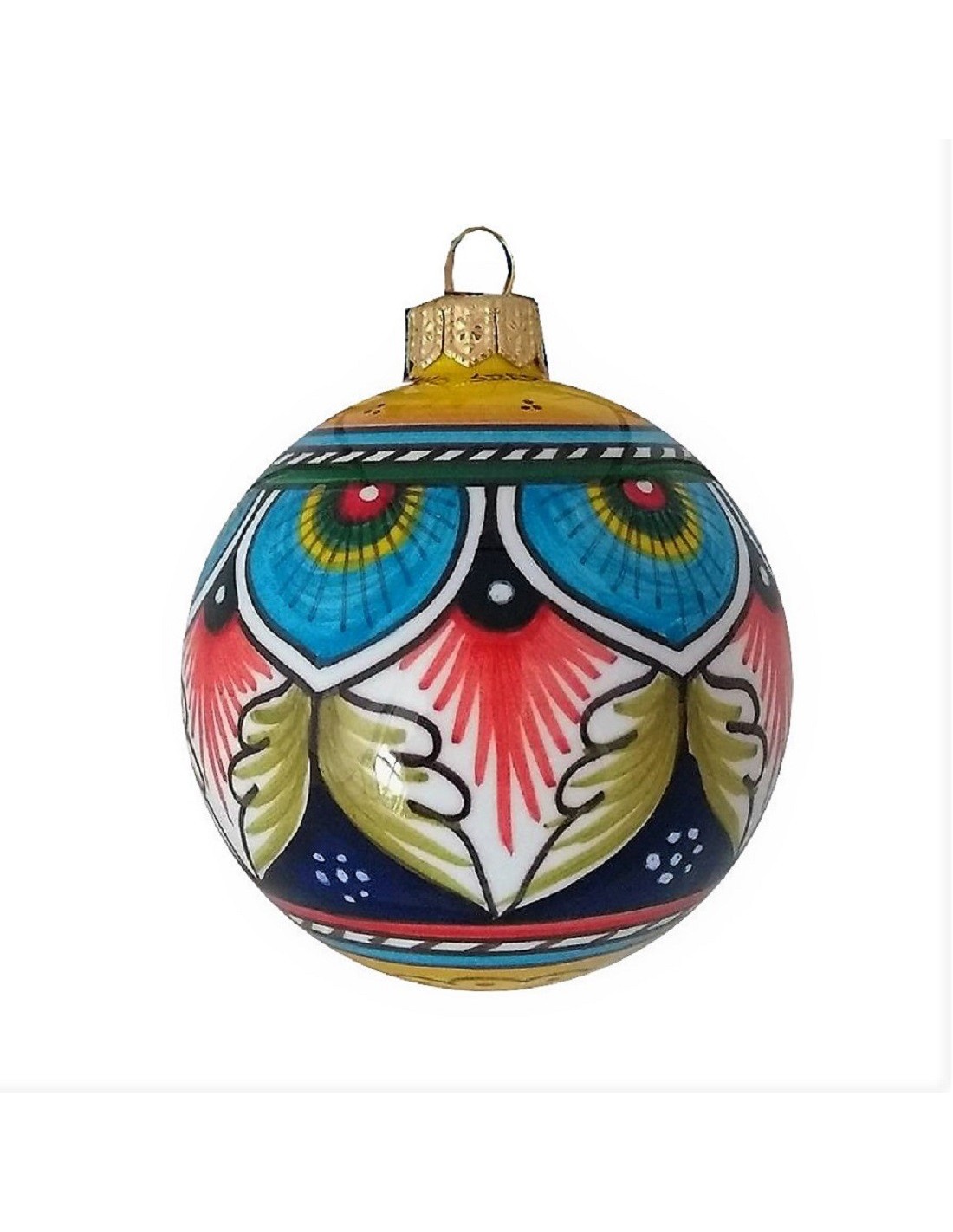 Ceramic Christmas ornament with geometrical pattern, handmade and handpainted in our factory in Deruta