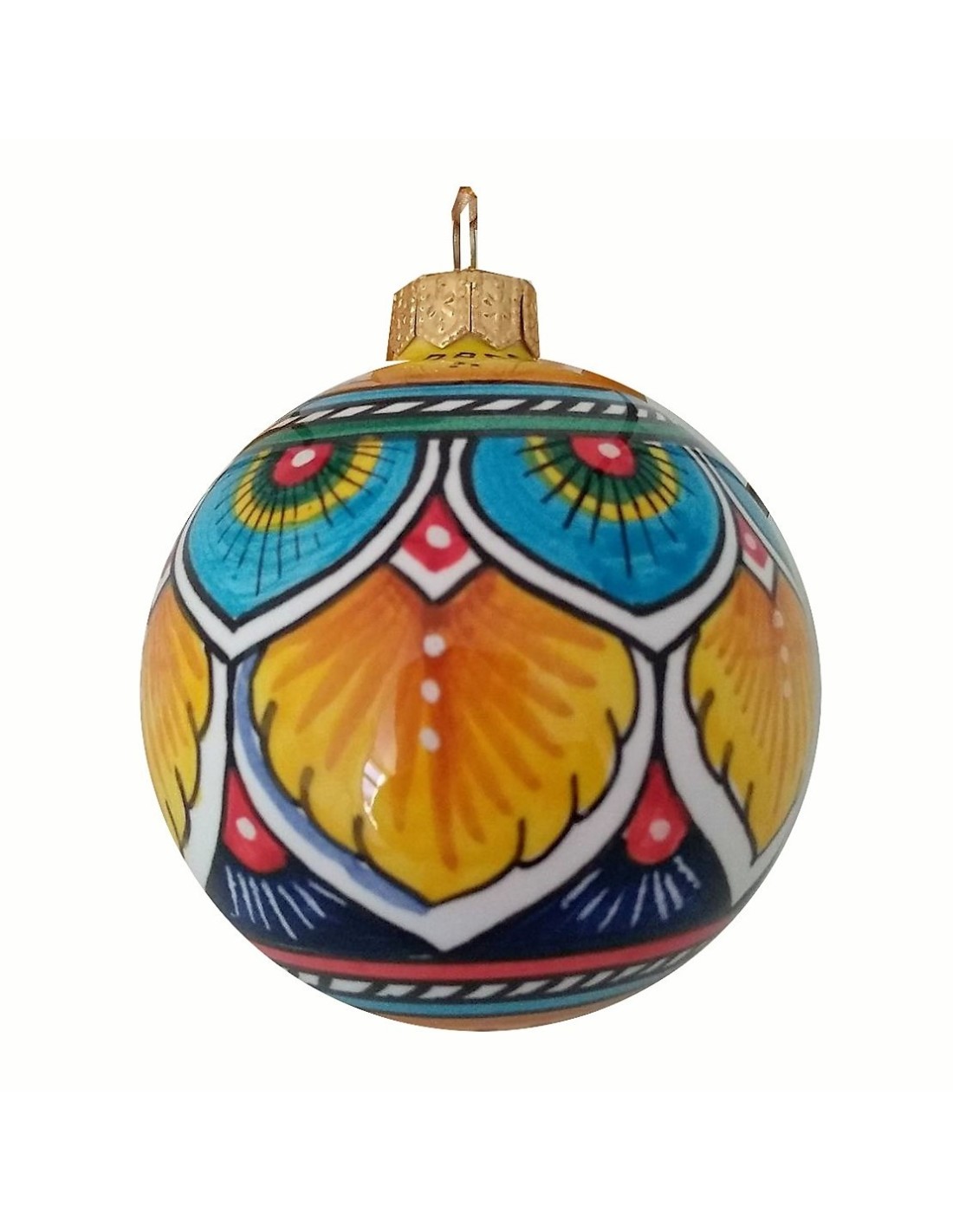 Ceramic Christmas ornament with geometrical pattern, handmade and handpainted in our factory in Deruta