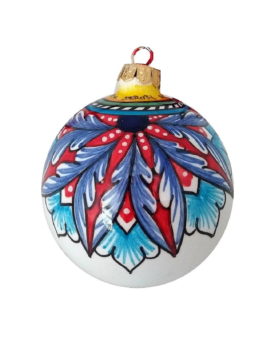 Ceramic Christmas ornament with geometrical pattern, handmade and handpainted in our factory in Deruta