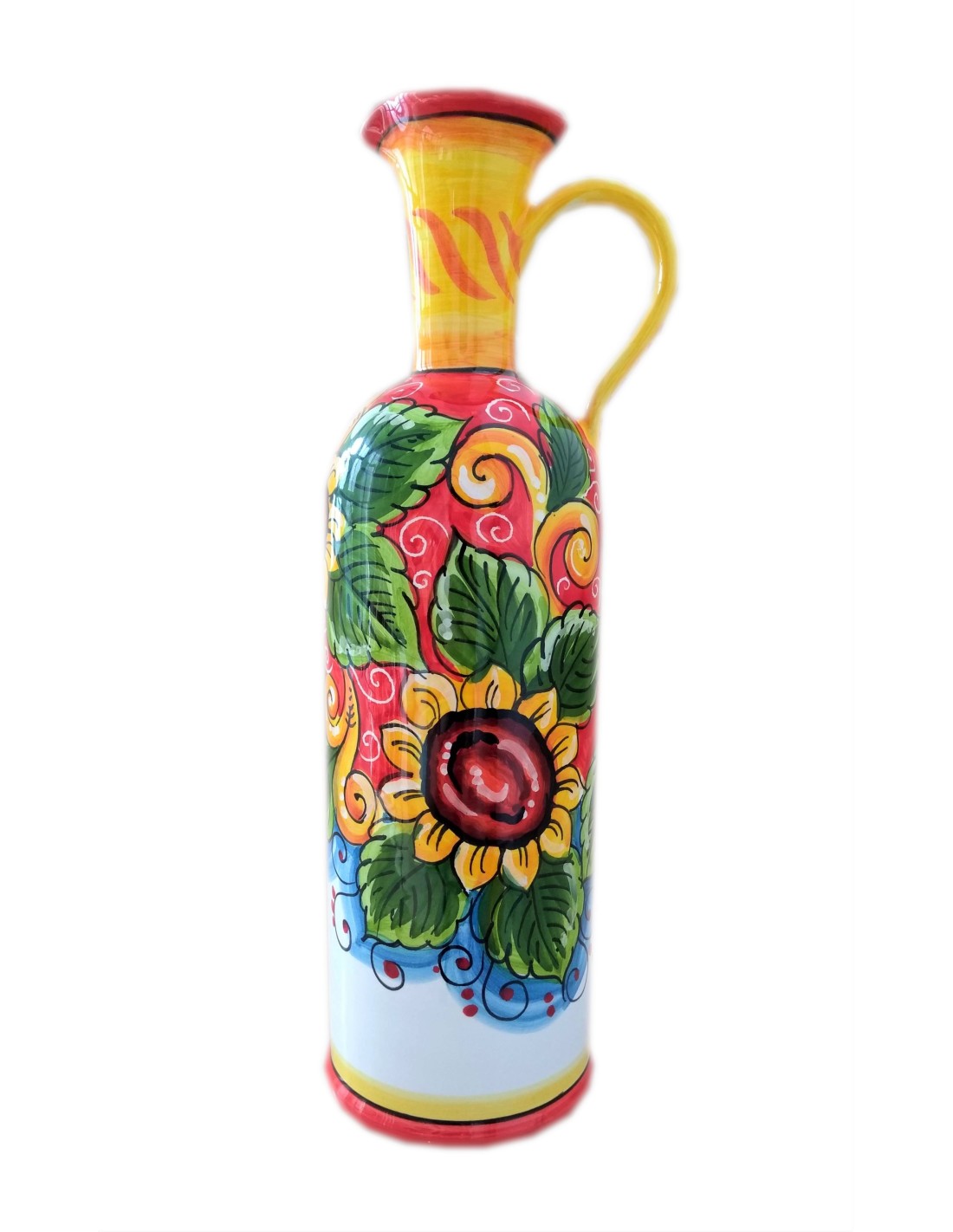 Oil bottle with sunflowers pattern, handmade and handpainted in our factory in Deruta