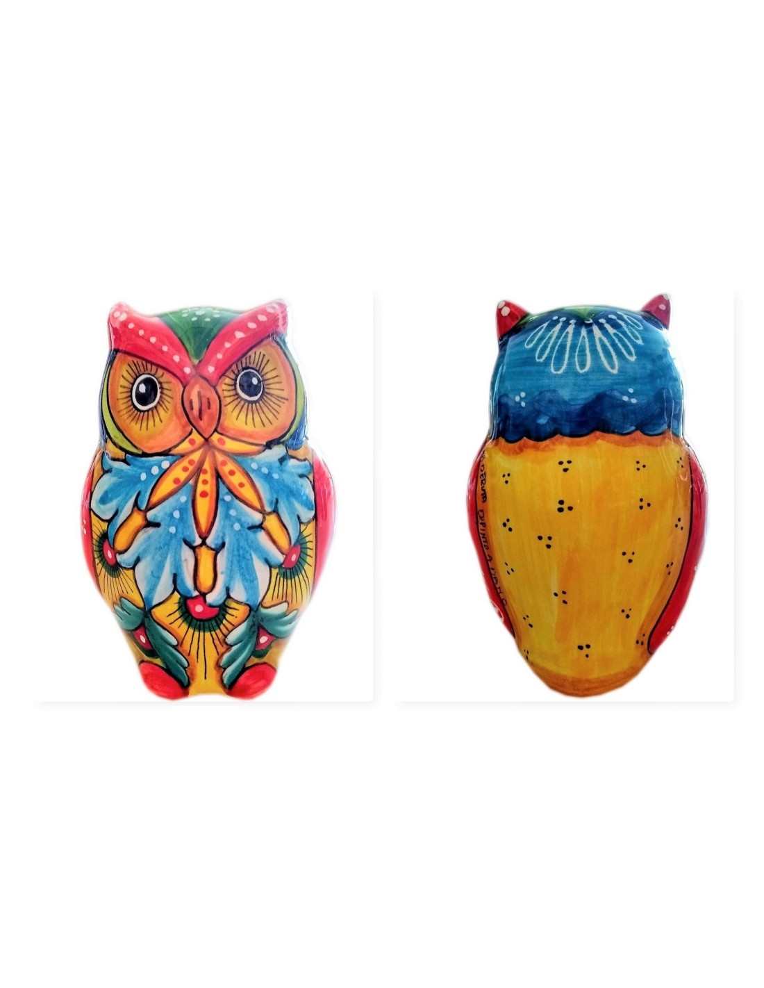 Ceramic big owl, handmade and handpainted in our factory in Deruta