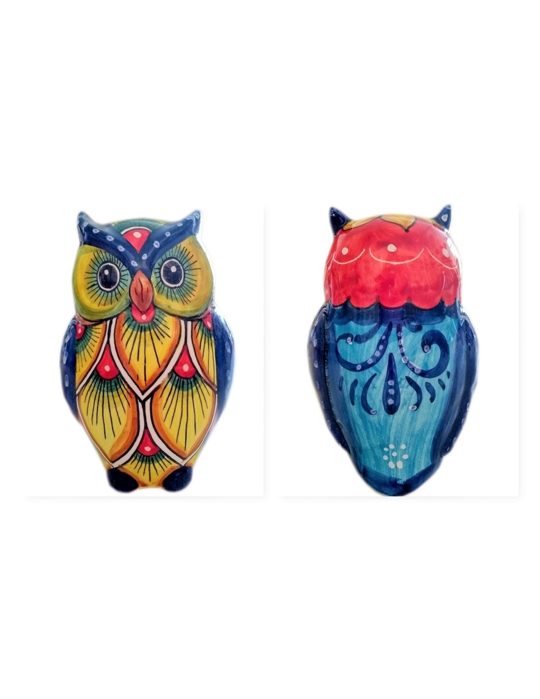 Ceramic big owl, handmade and handpainted in our factory in Deruta