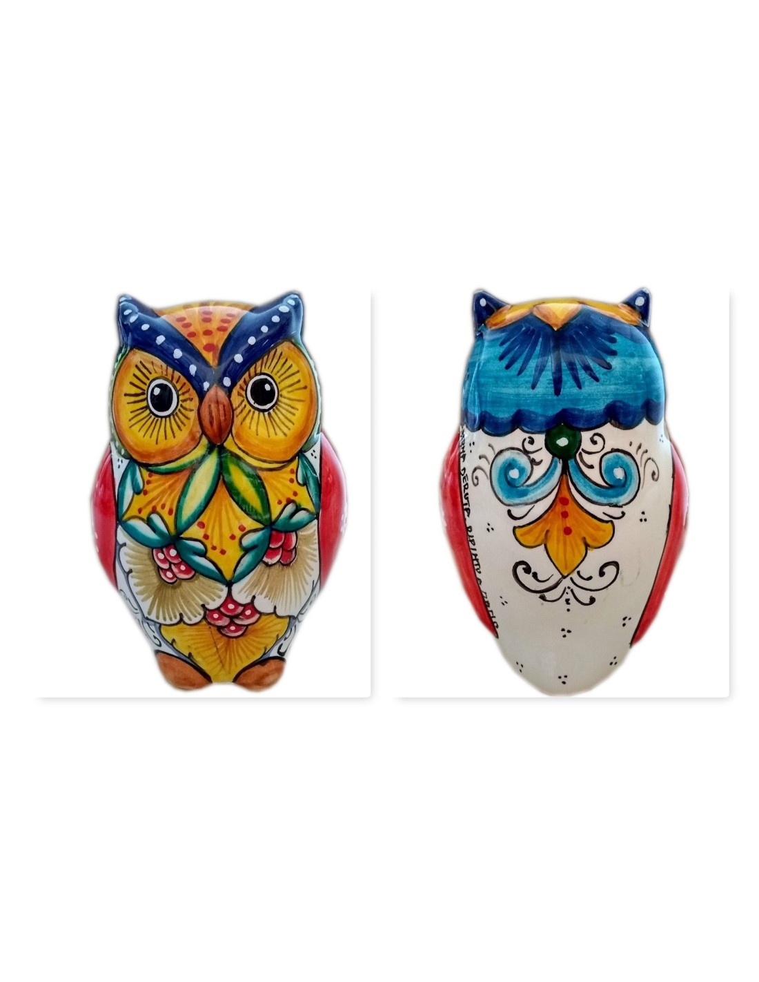 Ceramic big owl, handmade and handpainted in our factory in Deruta