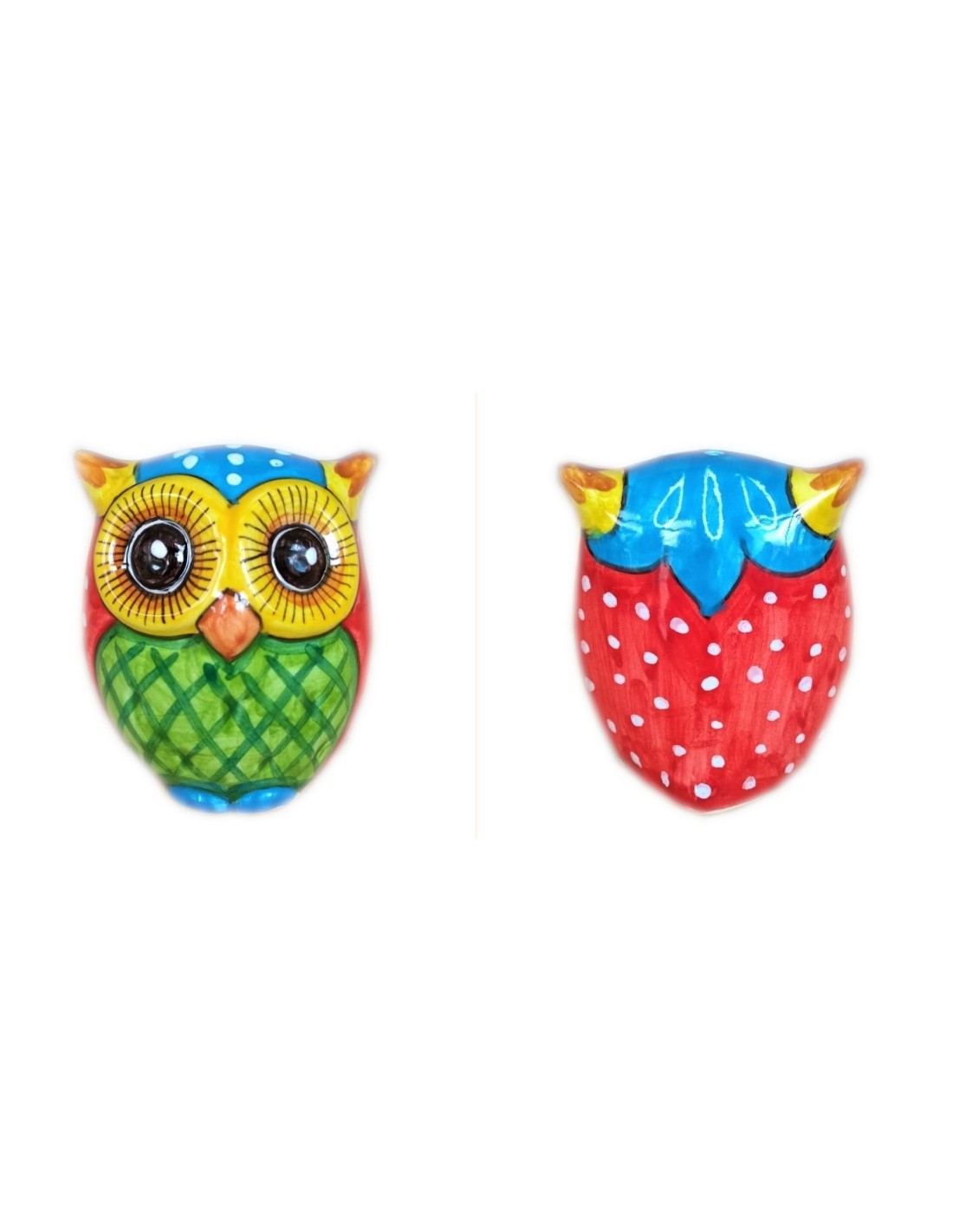 Ceramic medium owl, handmade and handpainted in our factory in Deruta