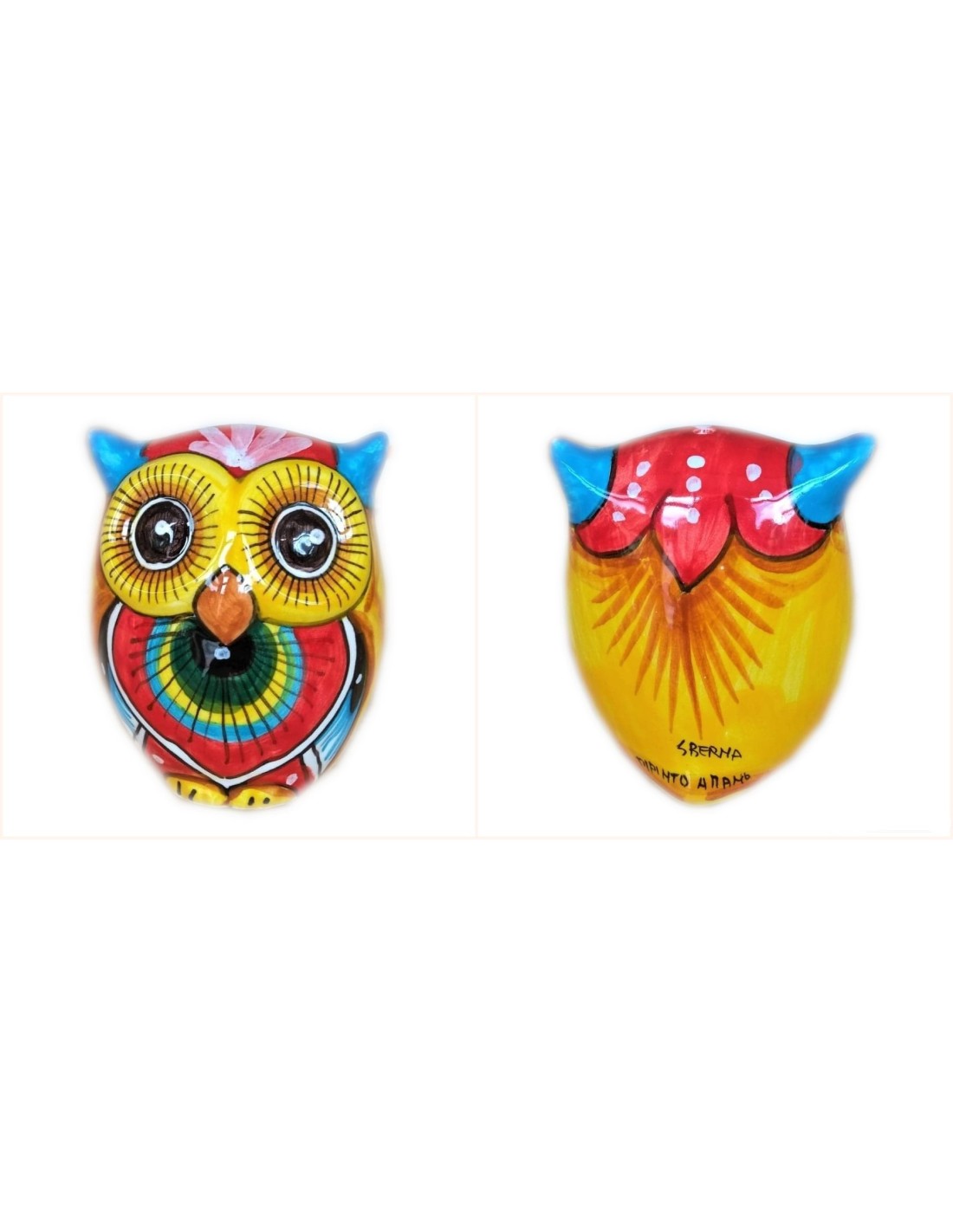 Ceramic medium owl, handmade and handpainted in our factory in Deruta