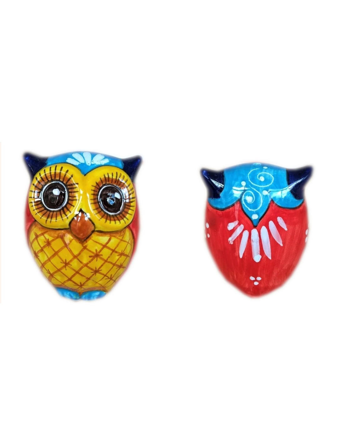 Ceramic medium owl, handmade and handpainted in our factory in Deruta