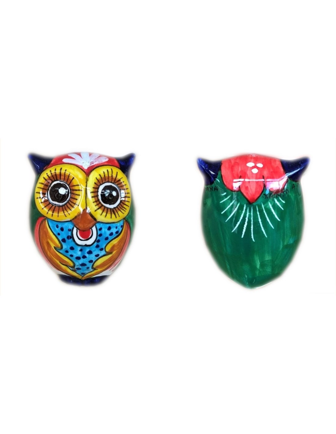 Ceramic medium owl, handmade and handpainted in our factory in Deruta
