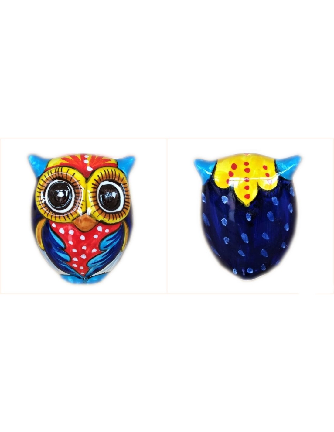 Ceramic medium owl, handmade and handpainted in our factory in Deruta