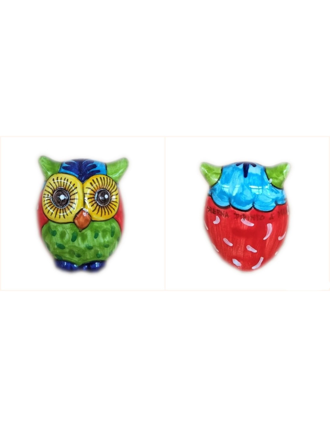 Ceramic small owl, handmade and handpainted in our factory in Deruta