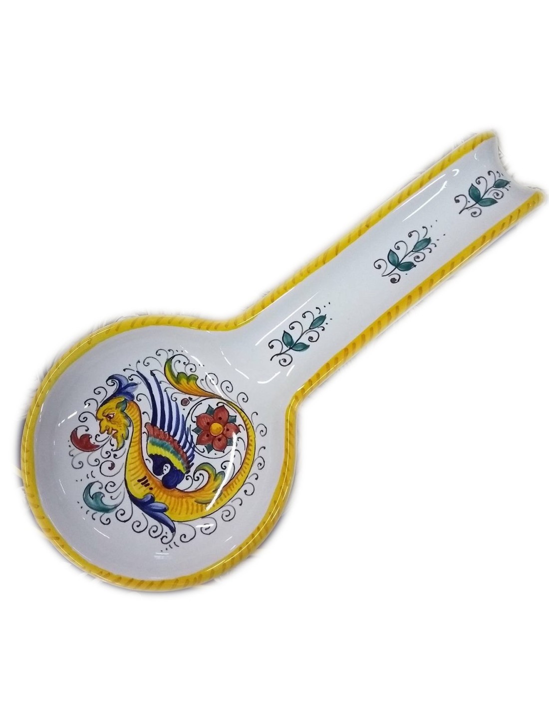 Ceramic spoon rest with Raffaellesco pattern, handmade and handpainted in our factory in Deruta