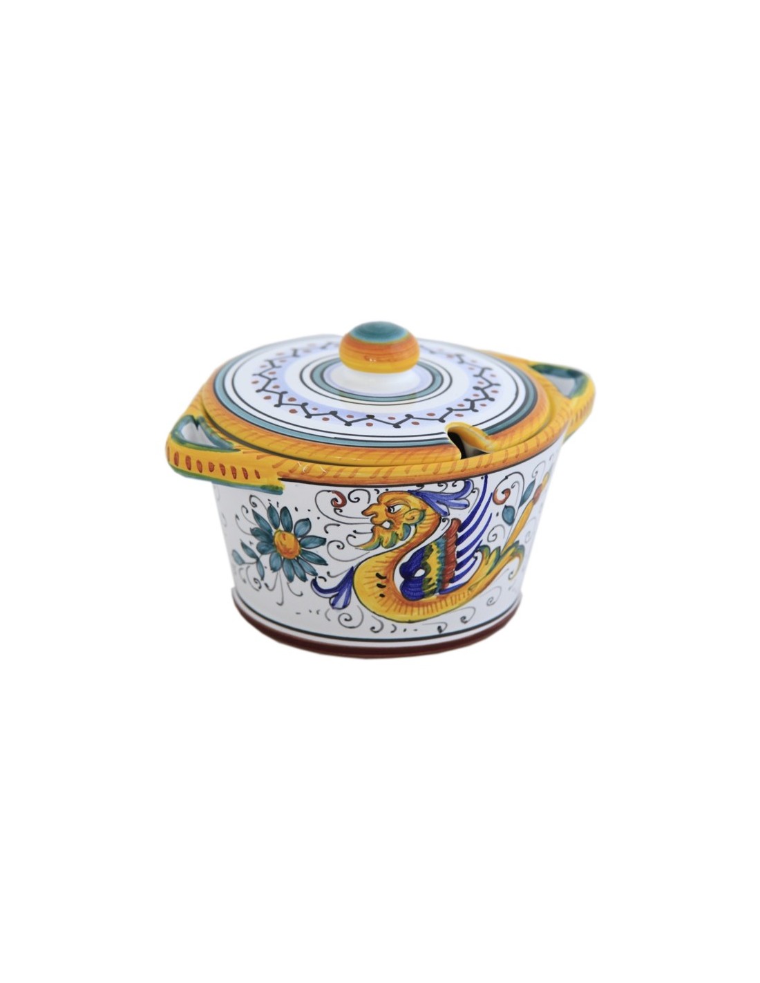 Ceramic cheese bowl with Raffaellesco pattern, handmade and handpainted in our factory in Deruta