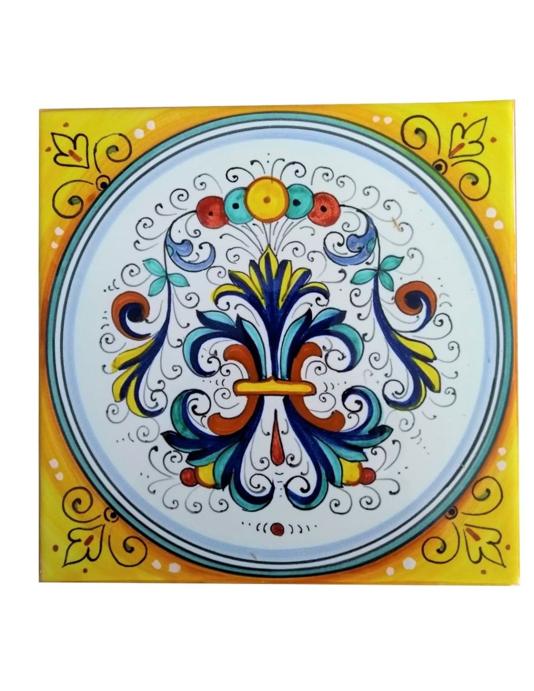 Ceramic tile with Ricco Deruta pattern, handmade and handpainted in our factory in Deruta