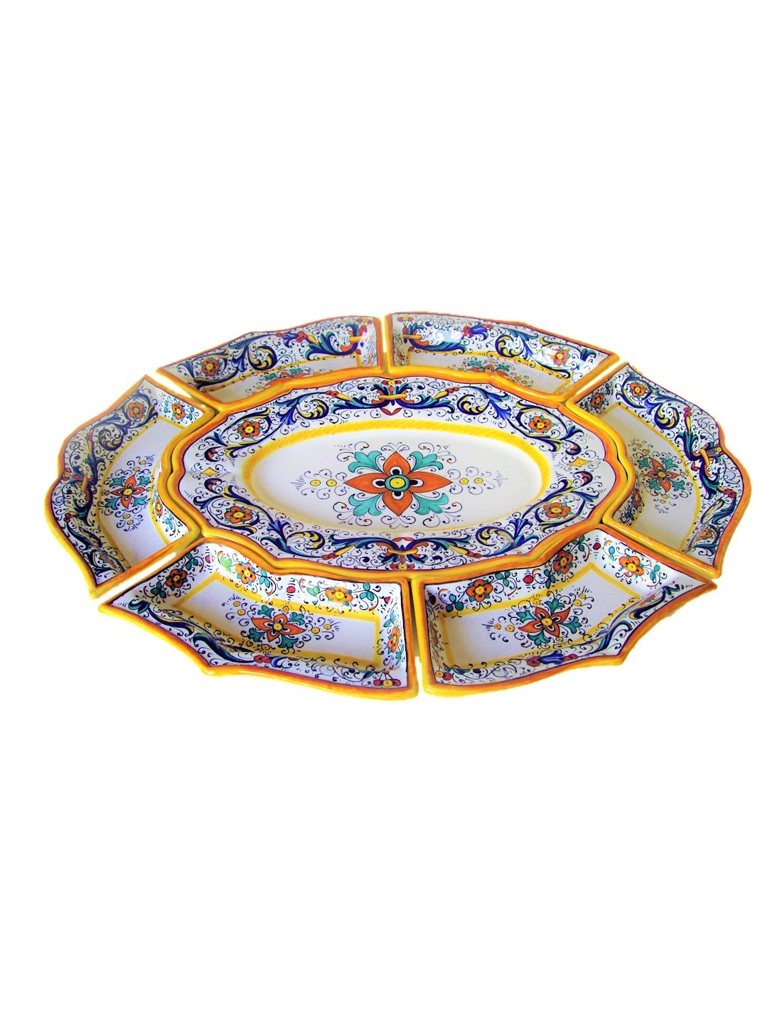 Antipastiera in ceramica con decoro Ricco Deruta, realizzata e dipinta a mano nella nostra fabbrica di Deruta
