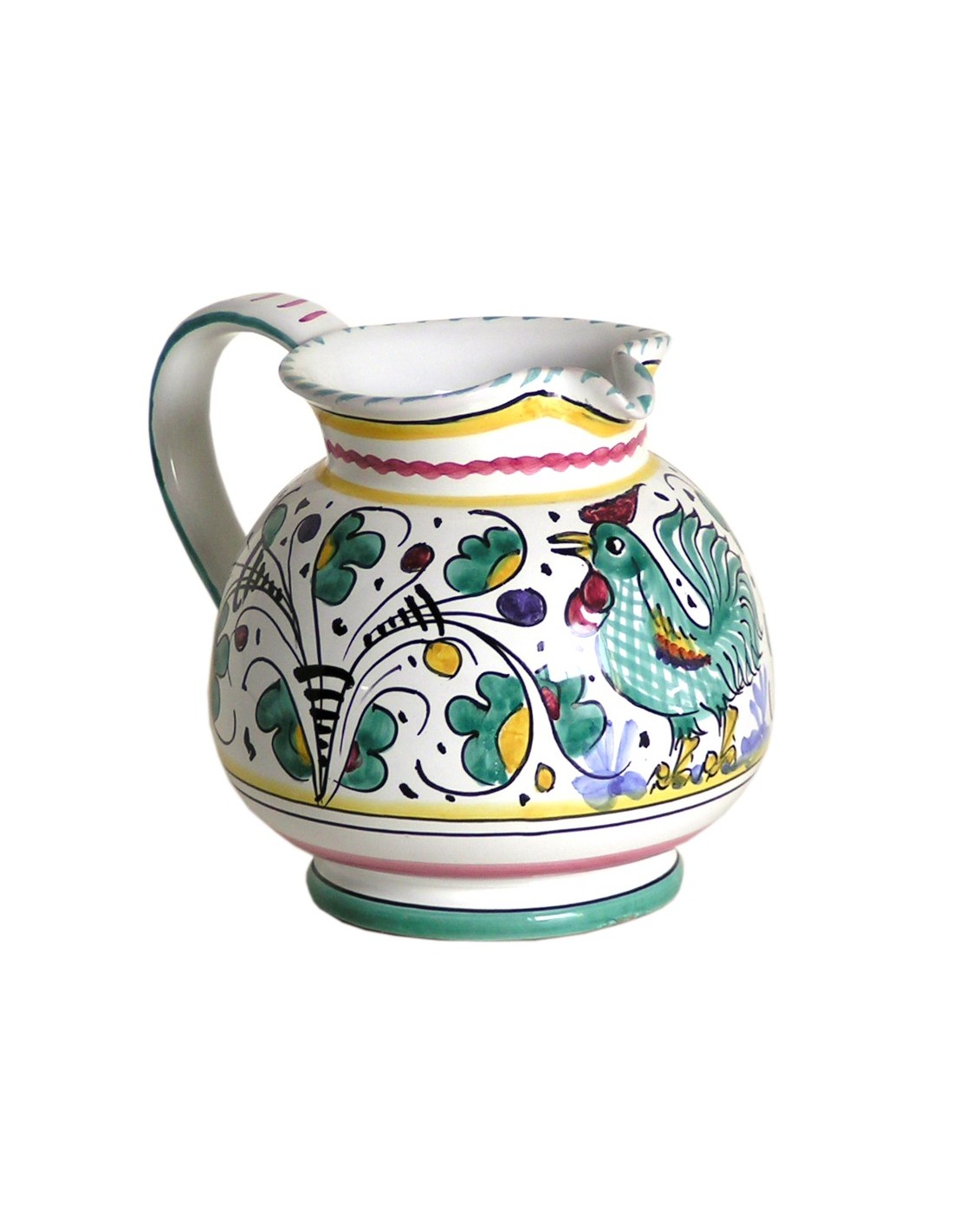 Brocca in ceramica con decoro Gallo, realizzata e dipinta a mano nella nostra fabbrica di Deruta